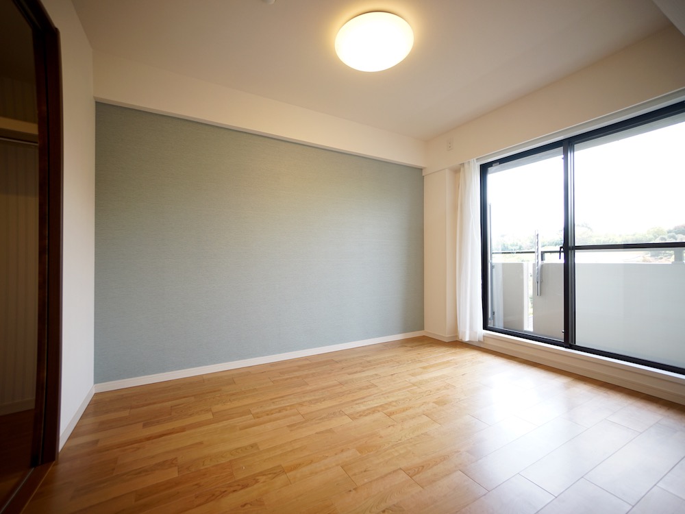 リビング脇にある6.1畳の個室には、大きな掃き出し窓が備わり、光や風とともに、緑の景色を楽しめます。