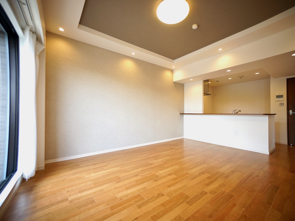 リノベーション済みのお部屋は、70㎡を超える3LDKで、上質なインテリアと最新の設備が整います。豊かな緑を望むバルコニーでは、子どもやペットと一緒に、のんびりとした癒しの時間を過ごすことができるでしょう。