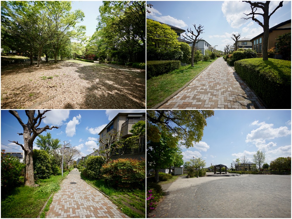 (写真右上:公園と公園をつなぐ緑道その1)