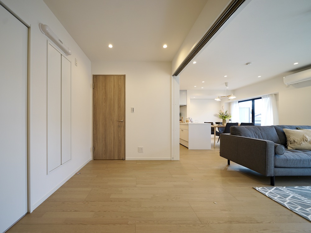 吊り下げ式の引き戸が採用されているため、リビングと自然につながることがポイントです。