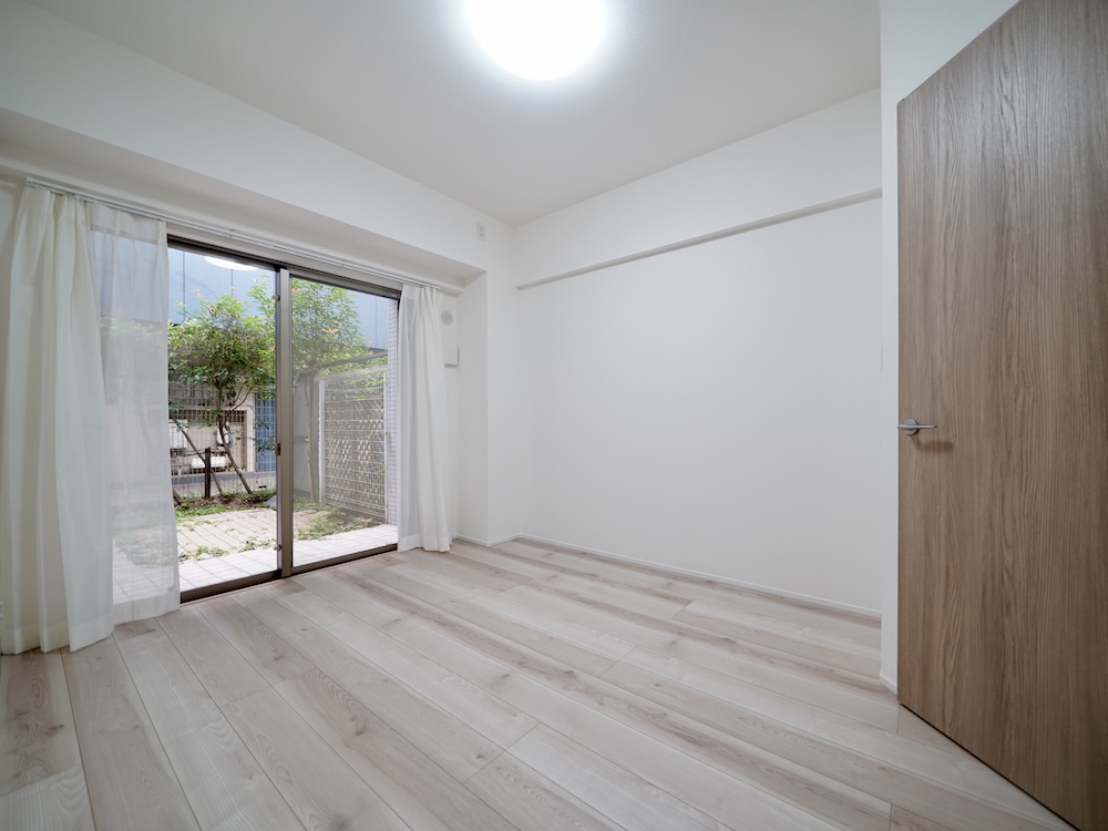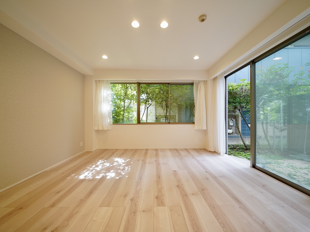 浴室までが豊かな緑で包まれる、過ごすことが気持ちの良い角部屋。庭スペースを”アウトドアリビング”にすることで、ペットとのゆとりある暮らしが実現します。