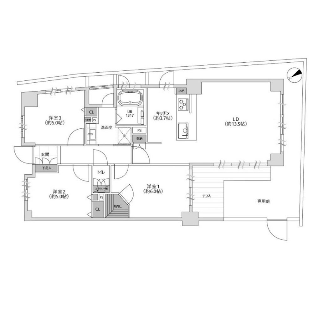 広さ70.03㎡+テラス4.05㎡+専用庭25.11㎡