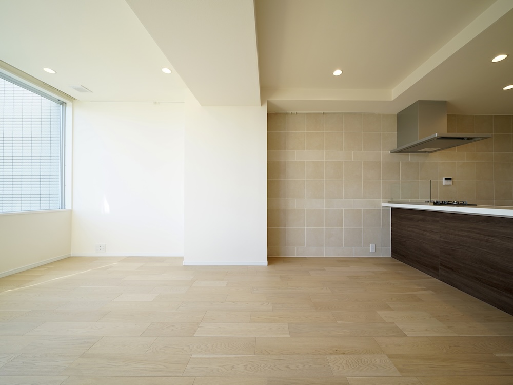 78㎡の3LDKに、35㎡のルーフバルコニーを備える最上階の角部屋。玄関ホールとキッチンのエコカラット、リビングダイニングの床暖房など、贅沢な設計も見どころです。