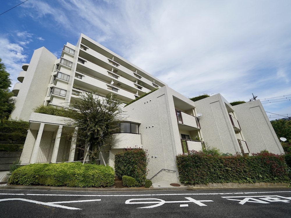 真っ白のタイルが印象的な、1980年代のヴィンテージマンション。