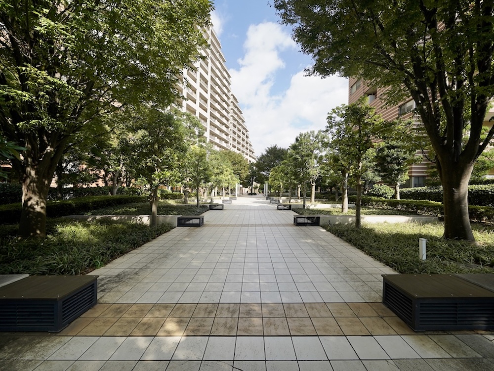 建物間に大きな広場が設けられ、快適な光と風を感じ、気持ちの良い毎日を過ごせそうな雰囲気です。