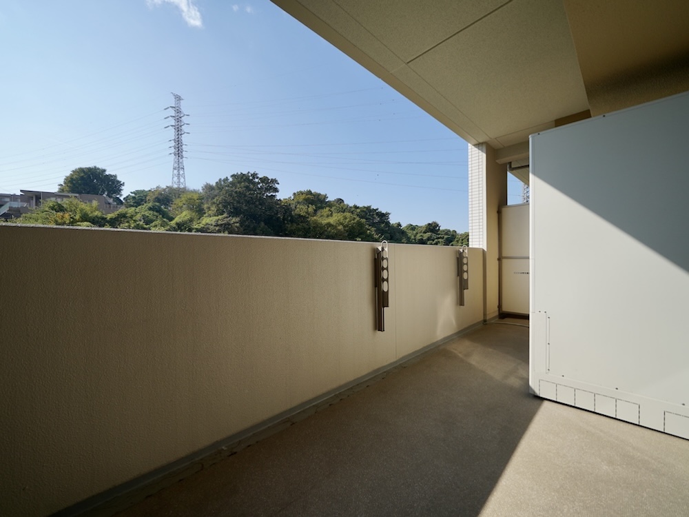 周囲を緑に包まれるバルコニーは、この物件の魅力のひとつ。