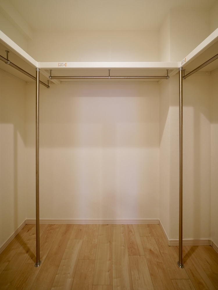 大きなウォークインクローゼットには、夫婦の衣類のほか、キャリーケースのような大きめアイテムの収納もできるでしょう。