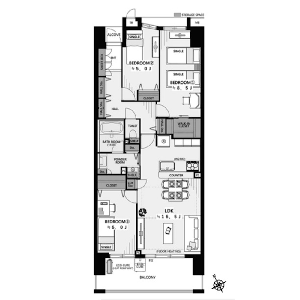 広さ84.63㎡+ワイドバルコニー12.80㎡