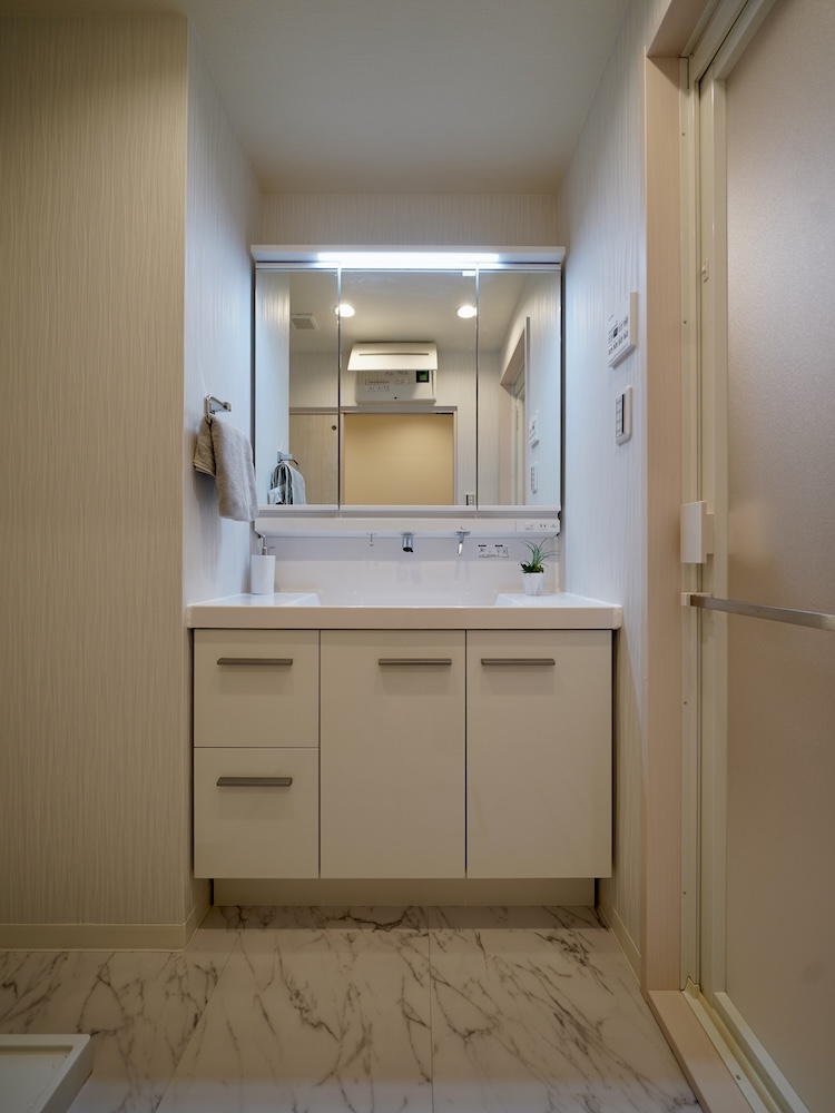ホワイトの木目調パネルが美しく、清潔感あふれるデザインです。