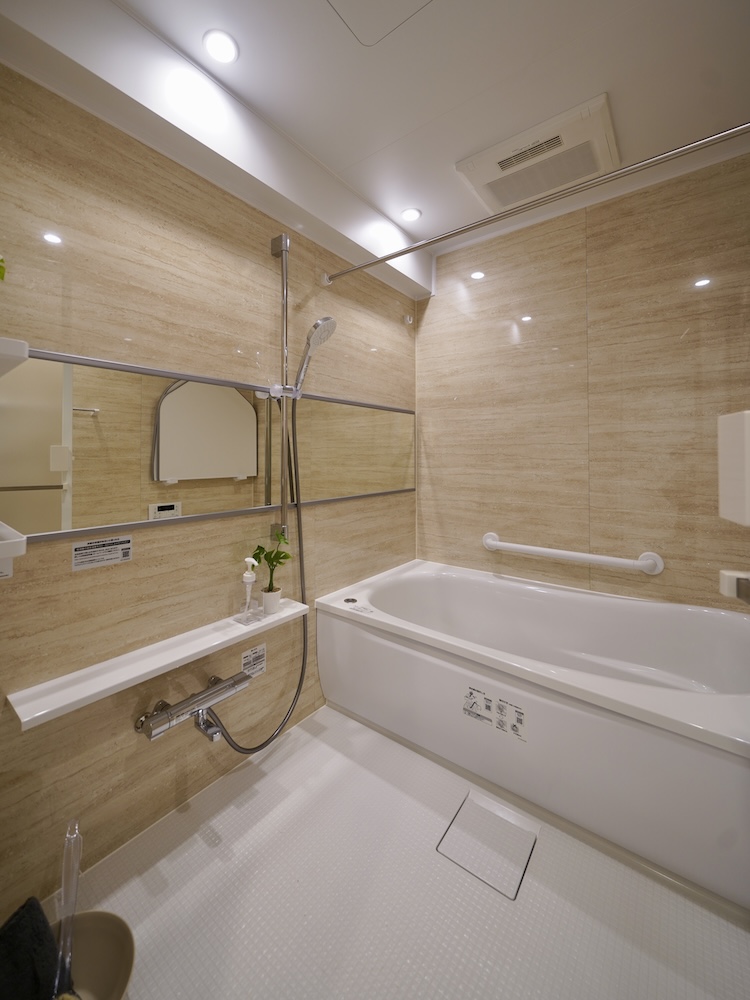 ユニットバスは断熱性の高い浴槽に、節水効果の高いシャワーや乾きやすい床など、機能性の高い設備を採用しています。