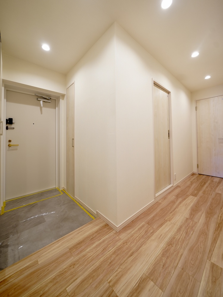 クランク玄関を採用することで、戸建てのような、ゆとりある雰囲気をつくりだしています。