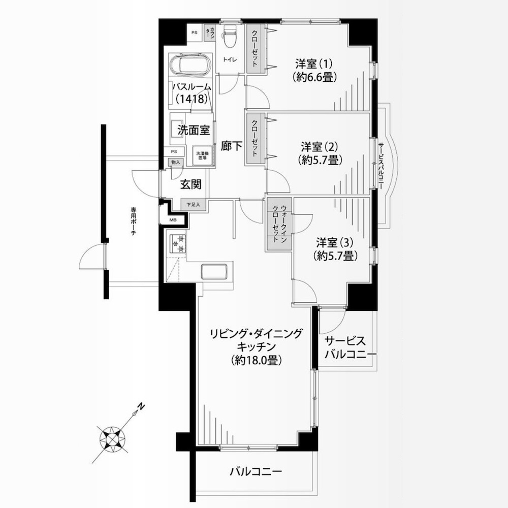 三方に窓が備わる、約80㎡のゆとりある3LDK。他住戸との接点が少なく、プライベート性の高い暮らしが実現します。