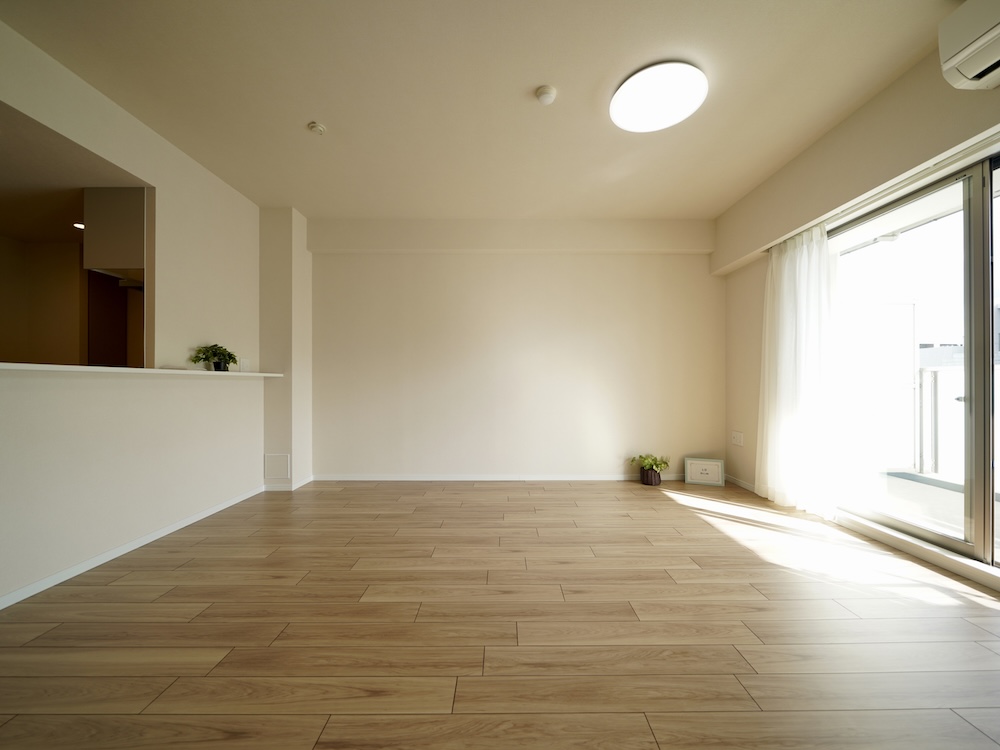 リビング、ダイニング、キッチンのどの場所にいても、窓の外の景色が視界に入り、気持ちの良い時間を過ごすことができるでしょう。