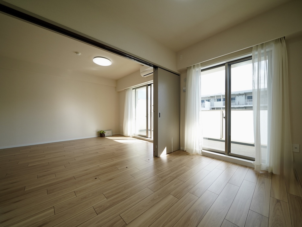 南面のほとんどを大きな開口部が占め、明るく、開放的な空間が広がっています。