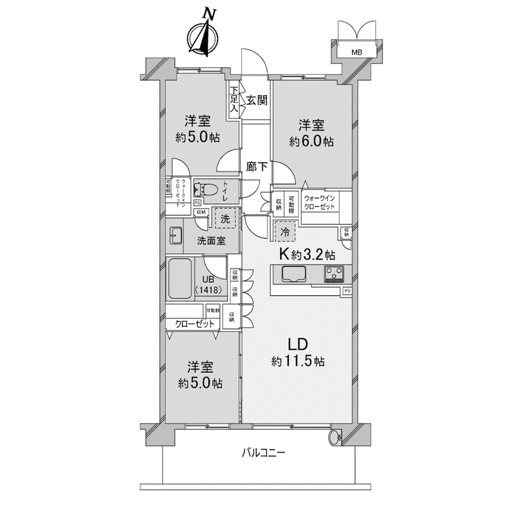 広さ70.68㎡+ワイドバルコニー12.2㎡