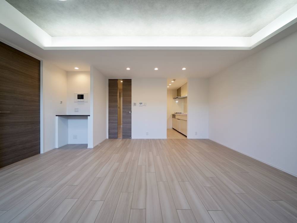 明るい色合いのフローリングとホワイトクロスの組み合わせが、明るく、清潔感あふれる雰囲気です。