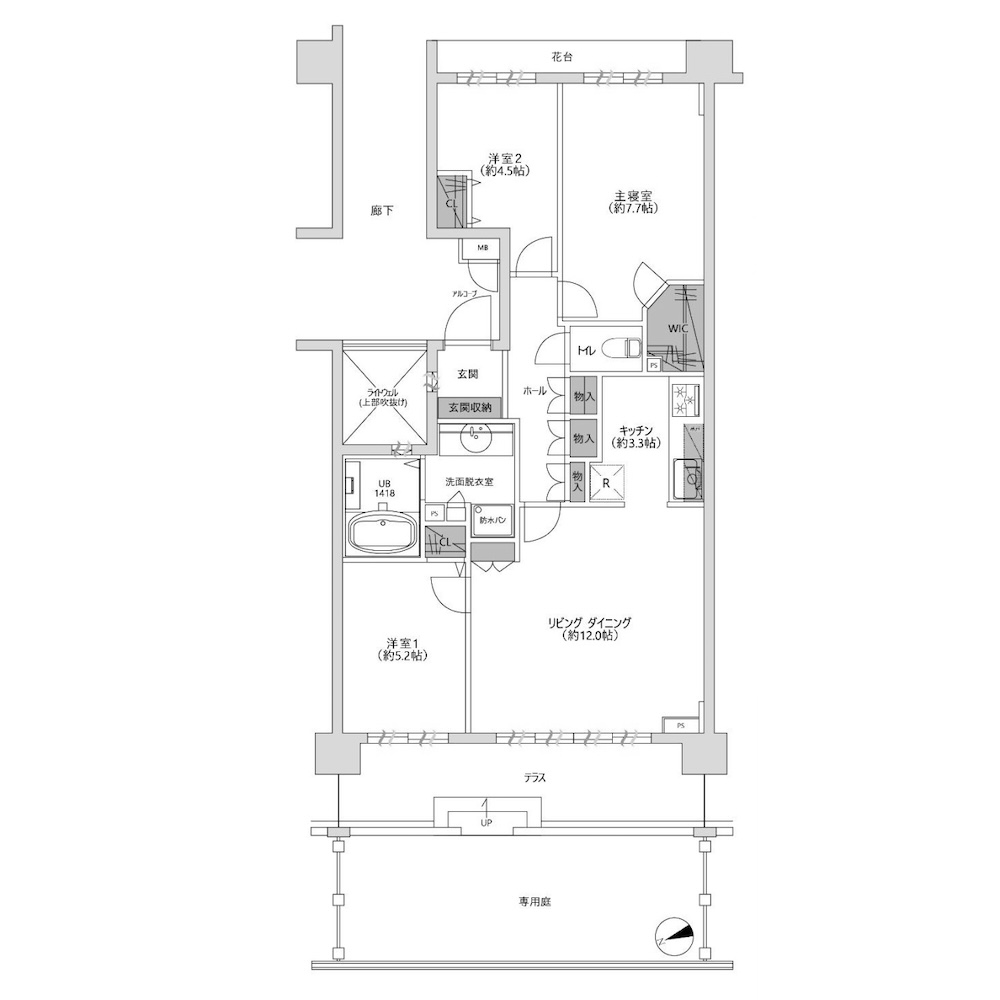 | バルコニー | テラス12.78㎡、専用庭18.46㎡ |
