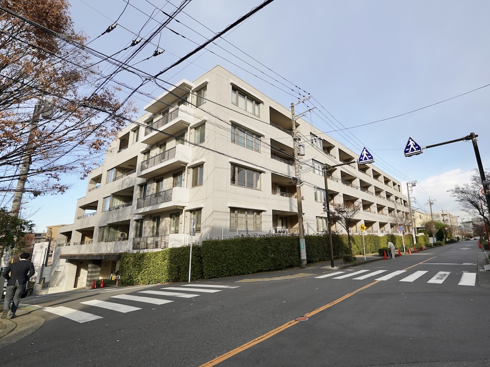 白一色のタイル貼りの外観は、トップブランドの分譲を納得させる、優等生な顔つきです。
