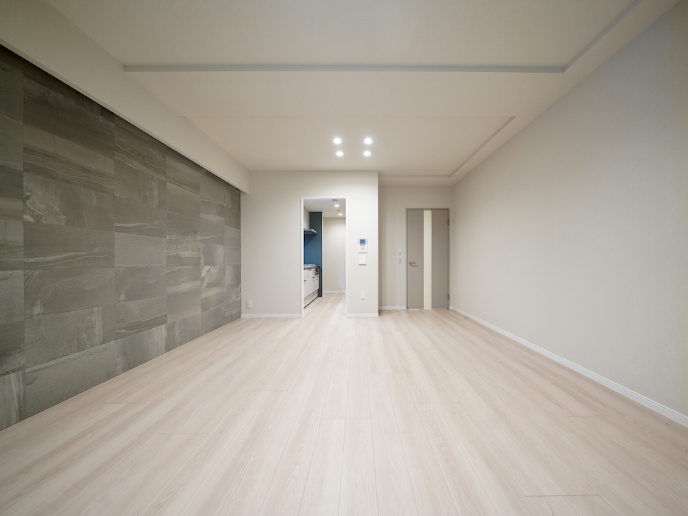 高級感漂うテクスチャーとシックな大人カラーには、ブラックのダイニングテーブルやグレーのソファなど、モノトーンの家具でホテルライクな空間に仕上げるのがオススメです。