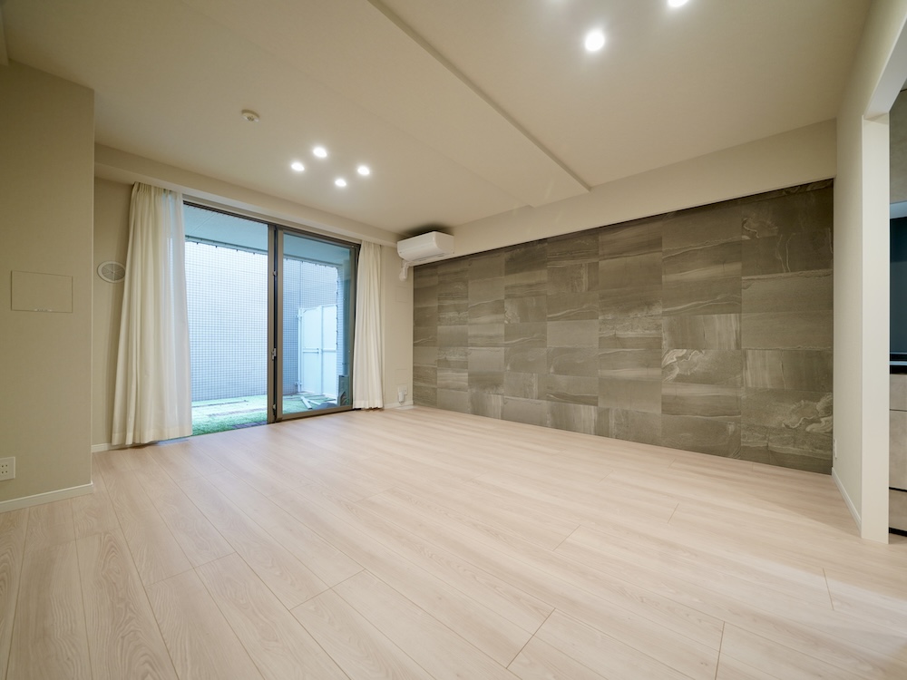インテリアのポイントは、やはり壁一面のエコカラット。