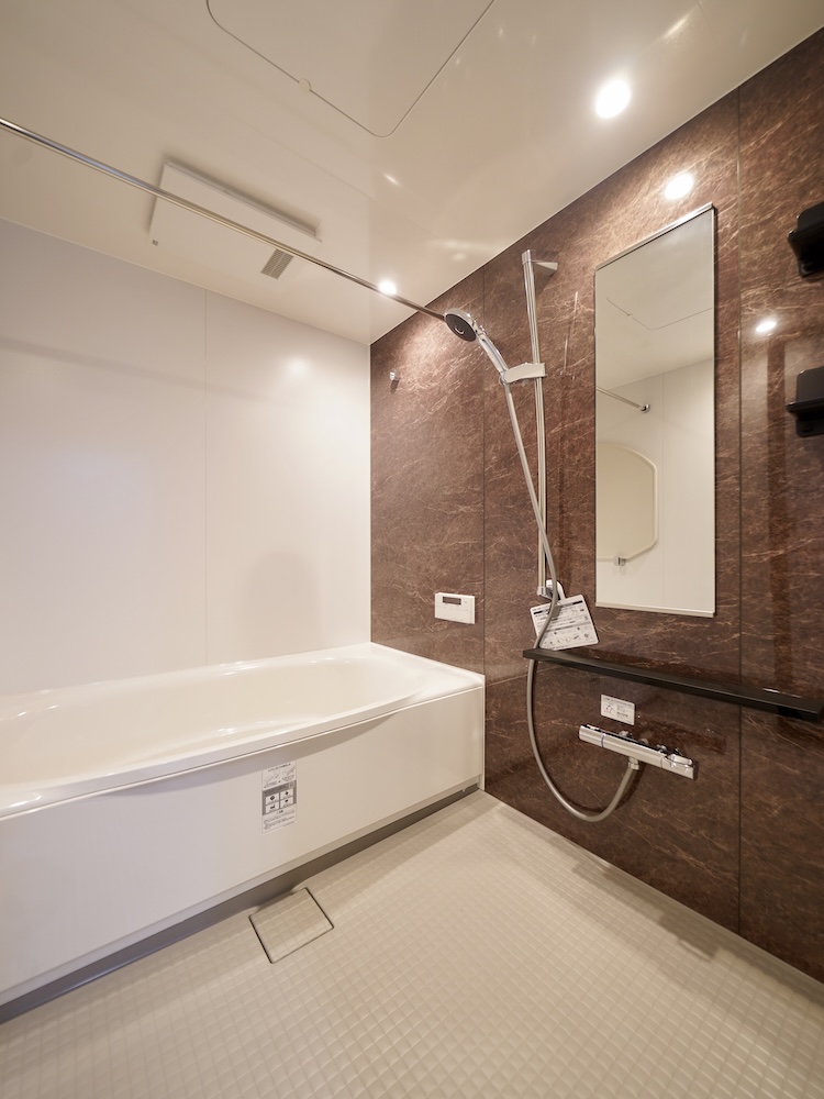 乾きやすい床や節水シャワー、浴室乾燥機など、最新の機能も搭載されています。