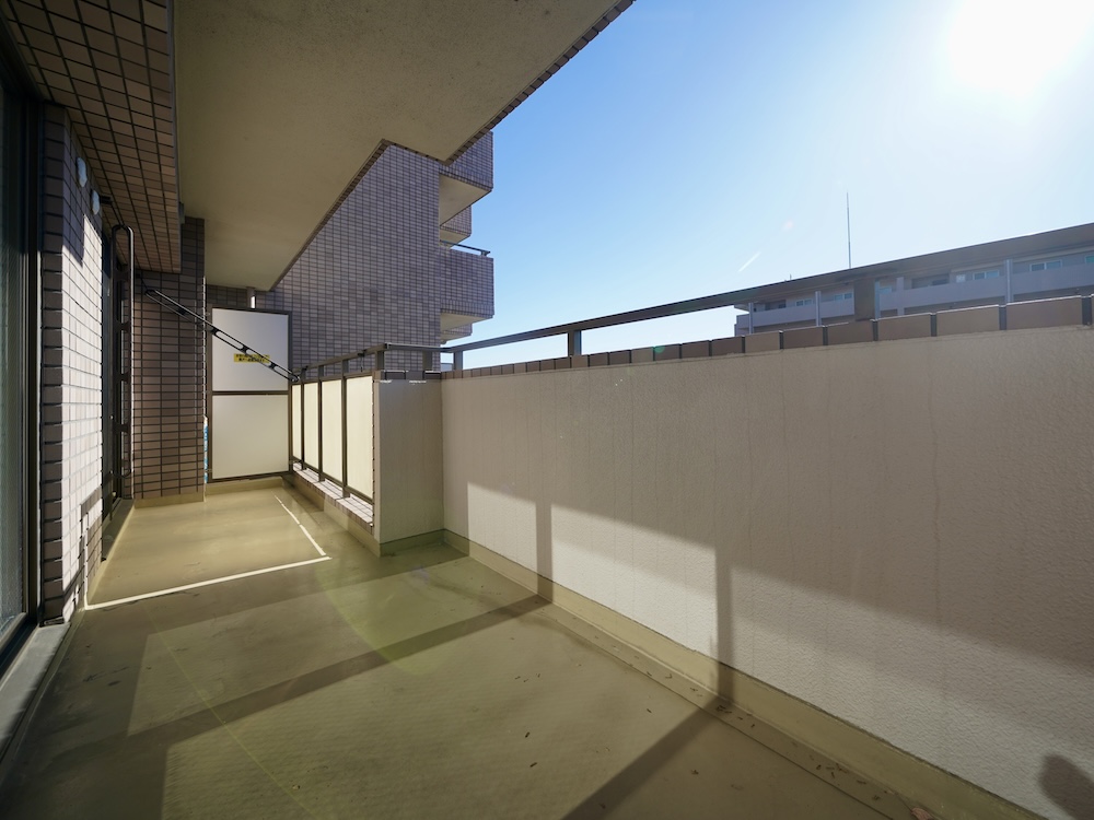 リビング前に奥行きを確保した、ゆとりあるバルコニースペース。