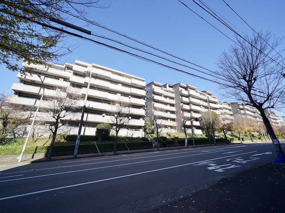 目の前の通りに美しい街路樹が続く物件は、「市が尾」駅より徒歩13分。