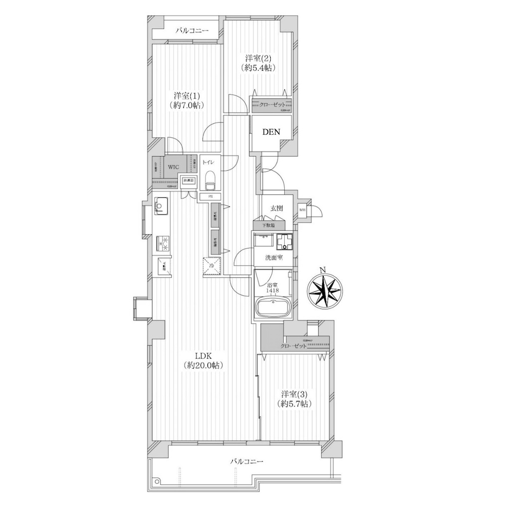 約90㎡のゆったりとした角部屋。南面の窓からあふれるほどの光が入り、二方向のバルコニーへと快適な風が抜ける、快適な住環境が整います。