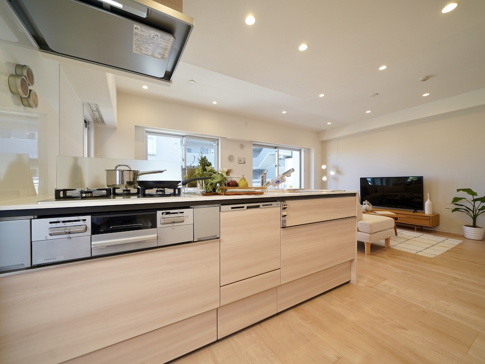 人造大理石のワークトップや浄水器内蔵の水栓、食洗機など、多くの機能が搭載され、日々の家事を快適にこなすことができるでしょう。