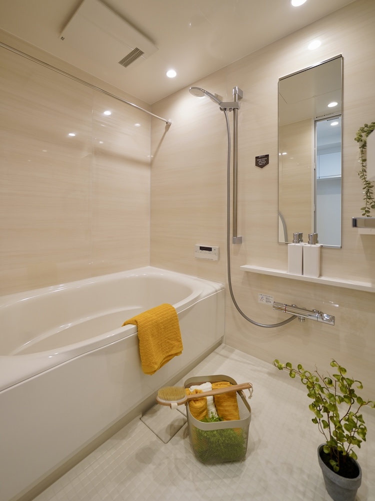 なめらかな曲線形状の浴槽にゆったりと体をあずけ、くつろぎのバスタイムを過ごすことができるでしょう。