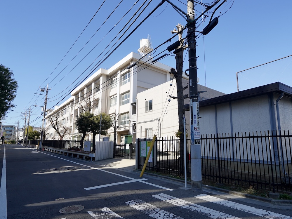 学区の「宮前平小・中学校」は、なんと中学校が目の前、小学校が同じブロックの徒歩2分。