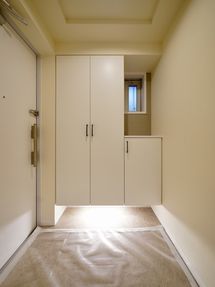シューズボックスの一部をカウンタータイプにすることで、小窓からやわらかな光と風を取り入れます。