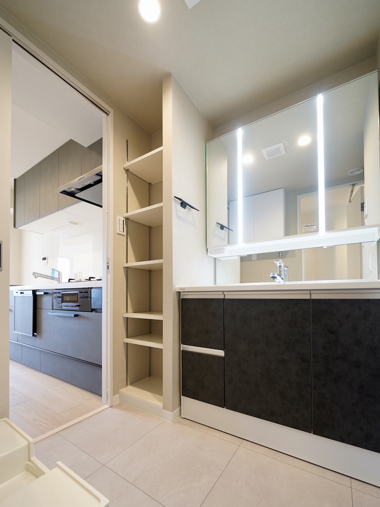 キッチンから洗面室、浴室がつながっている、スマートな動線もポイントです。