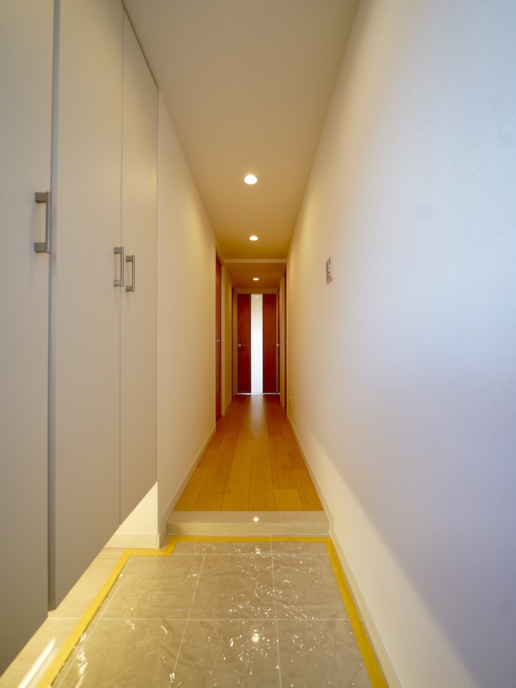 扉を開けると、まっすぐに伸びる廊下が、奥のリビングへと誘います。