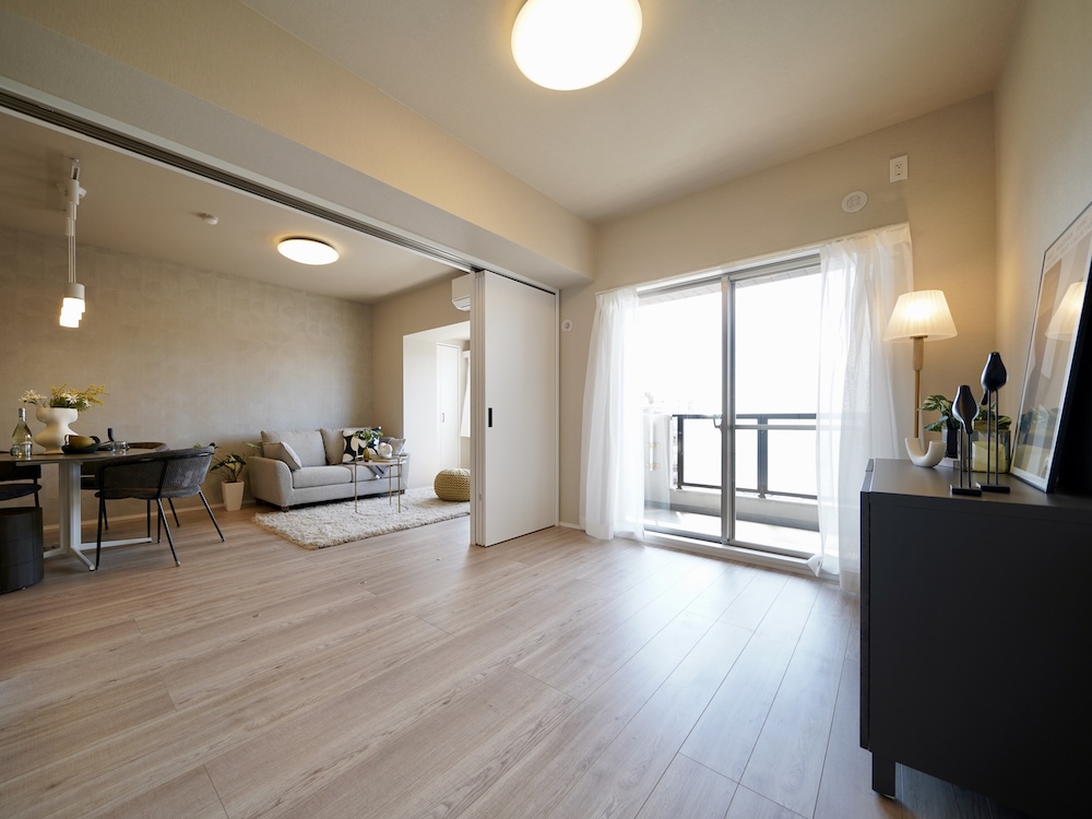 木目の美しいフローリングと、ホワイトの建具が清々しい雰囲気。