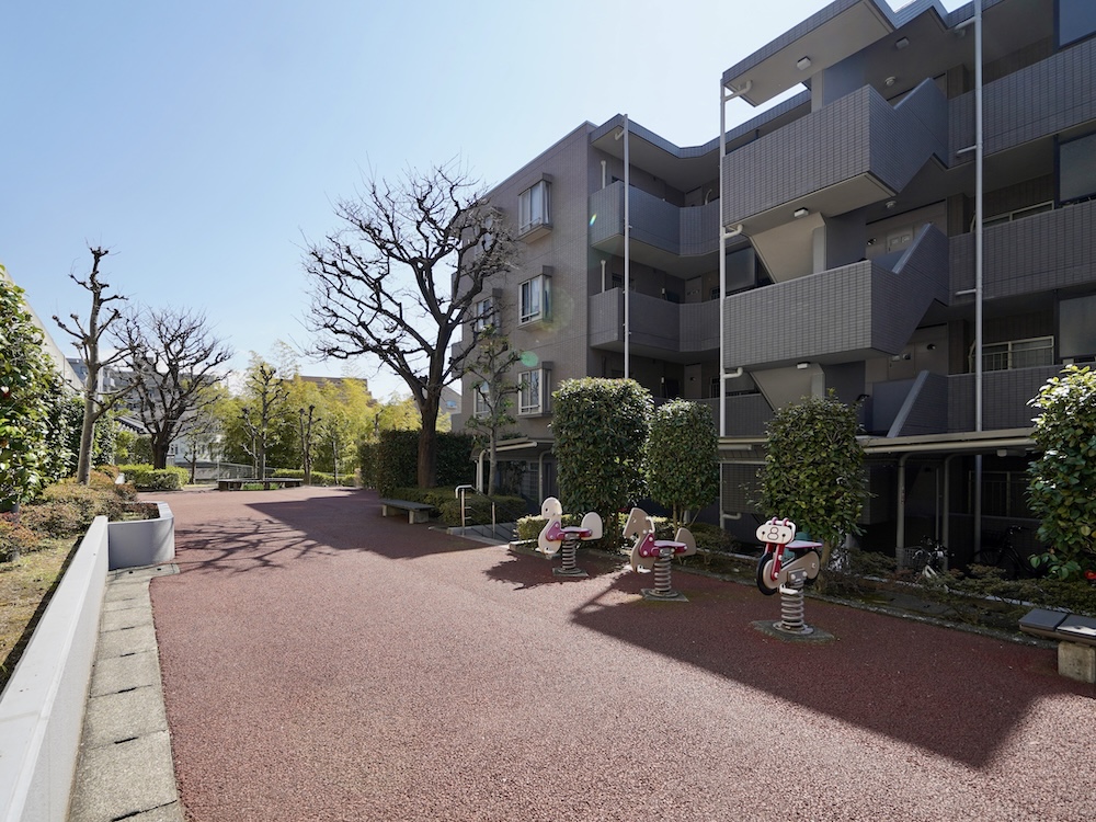 ベンチを備えた広場など、共用部分も充実していて、豊かな植栽が美しくメンテナンスされているのもわかります。