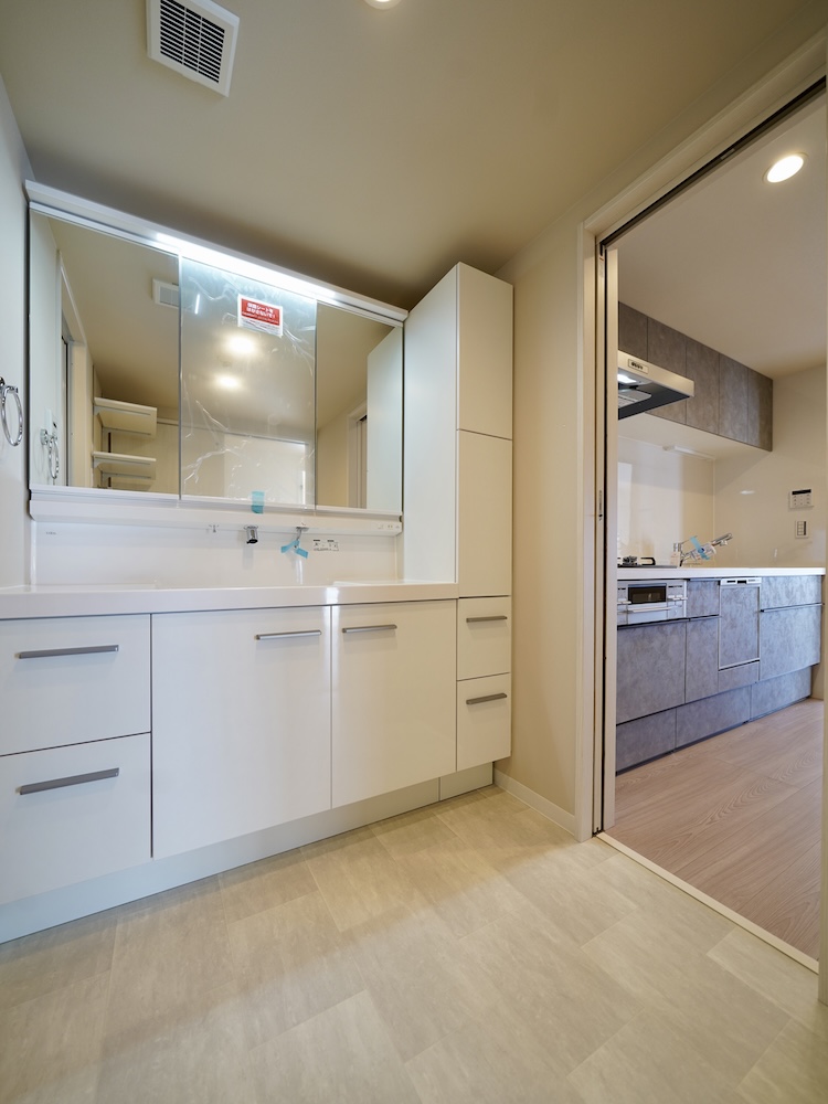 洗面室は廊下からの出入りも可能なため、キッチンに立ちながら洗濯の様子を気にかけるなど、家事を効率よくこなせるでしょう。