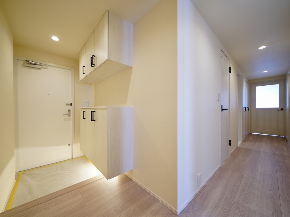 空間にゆとりがあり、帰宅時にホッとひと息つけそうな玄関です。