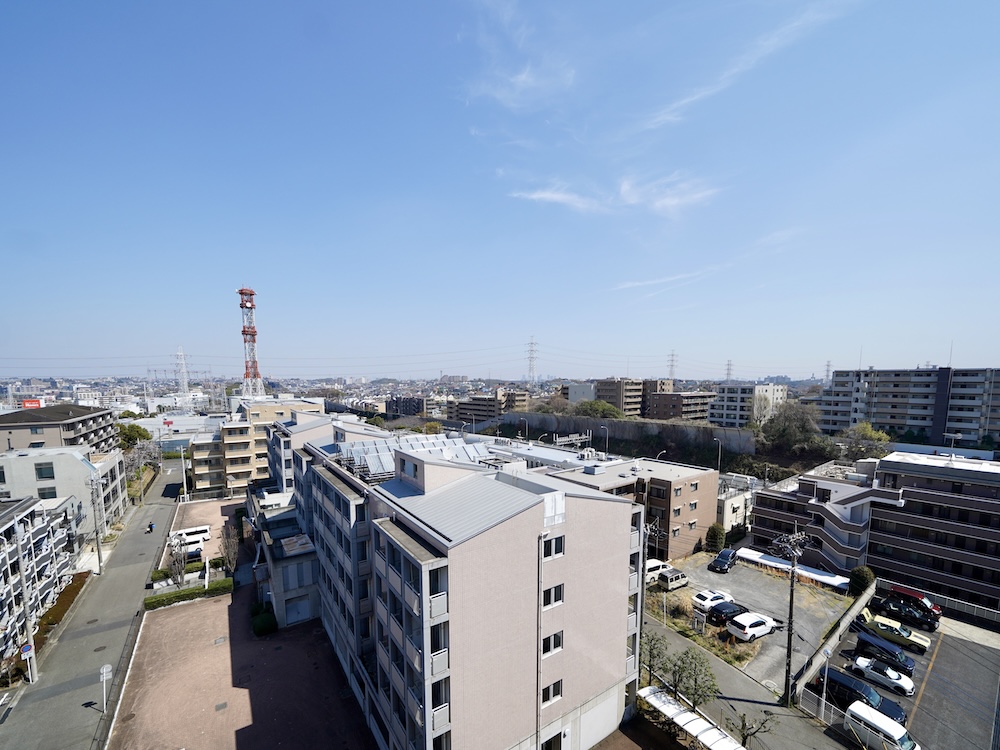 「市が尾」の街並みを高台から見下ろし、要塞のようにそびえ立つ建物。