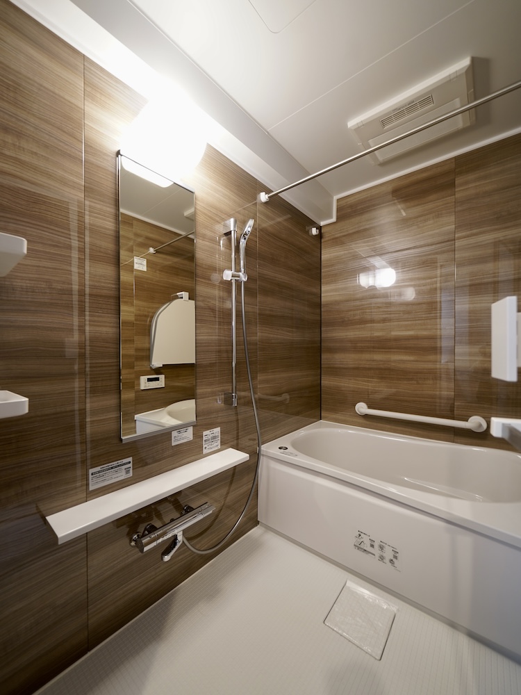 ゆったりとしたオーバル型の浴槽や大型のシャワーヘッドなど、最新の機能と美しいデザインに囲まれ、快適な時間を過ごせそうなバスルームです。