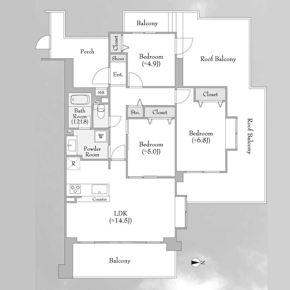 | バルコニー | ルーフバルコニー30.40㎡、バルコニー13.50㎡ |