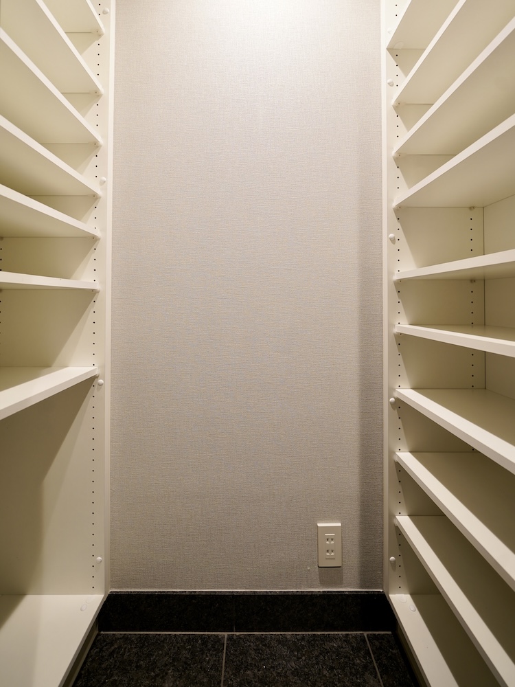 造り付けの収納スペースが用意されているため、リネン類も余裕をもって収納することができるでしょう。