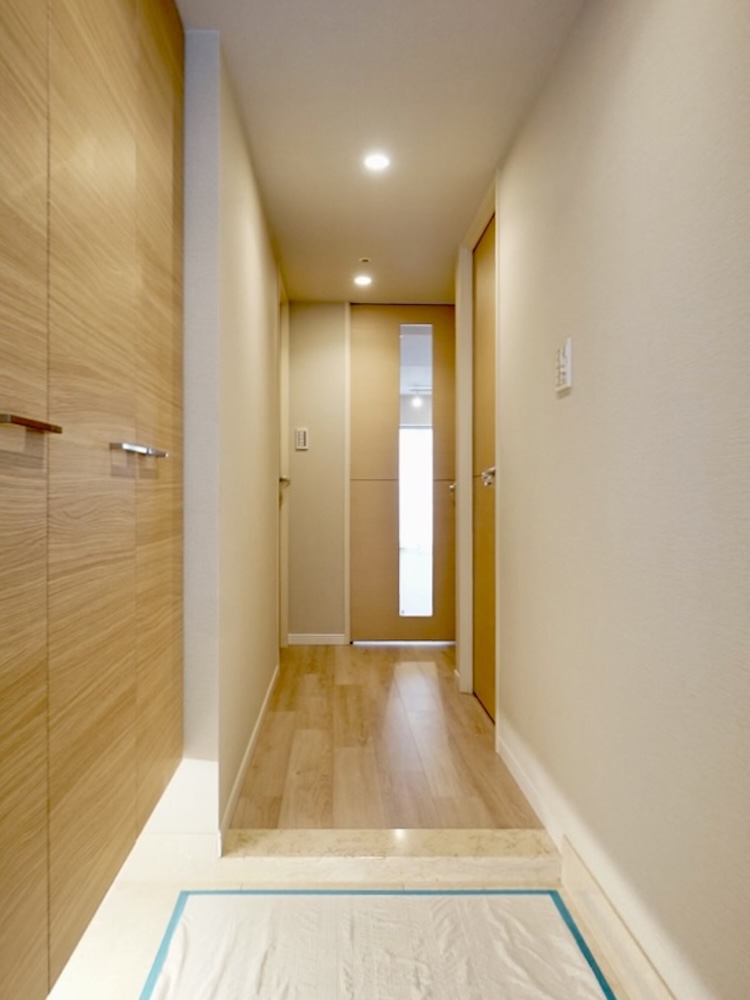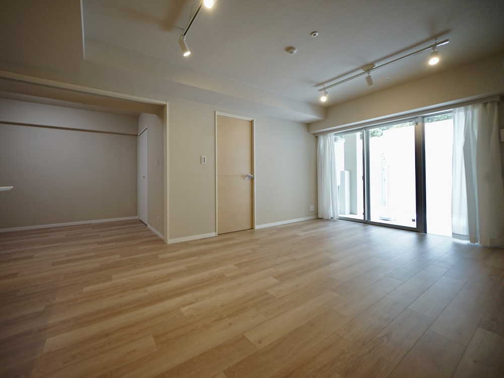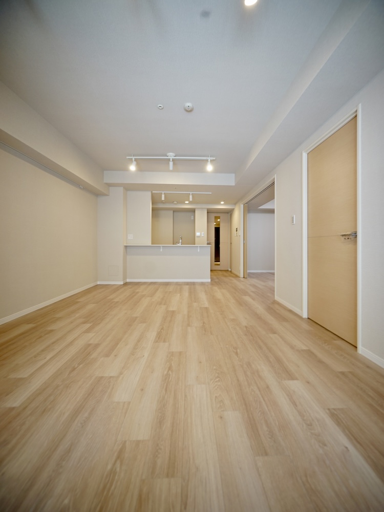 縦に長い空間は壁面が広く、テレビボードやソファ、アートなどのレイアウトもしやすい設計です。