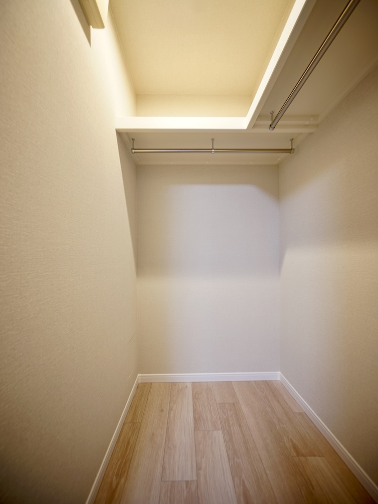 大型のウォークインクロゼットには、季節家電やスーツケースなど、家族共用の荷物も収納可能。