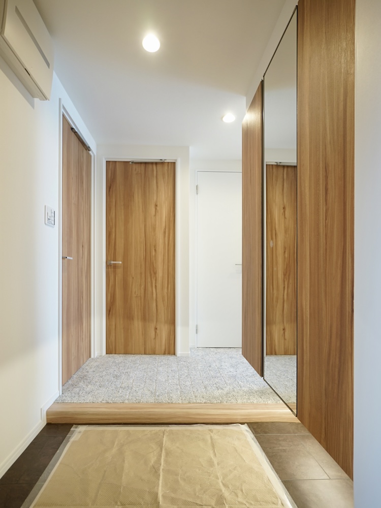 “中入り玄関”のため、空間に奥行きがあり、ゆとりとプライバシーを確保した設計です。