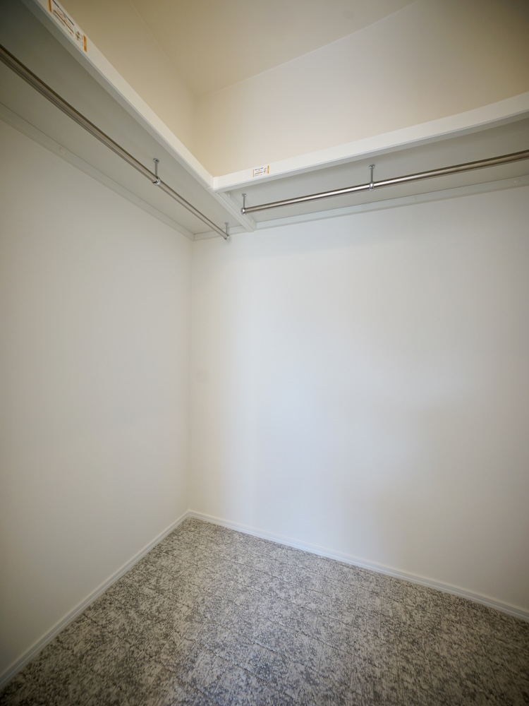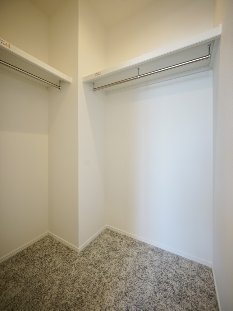 (写真下)コの字型に棚とパイプを備えたウォークインクロゼット