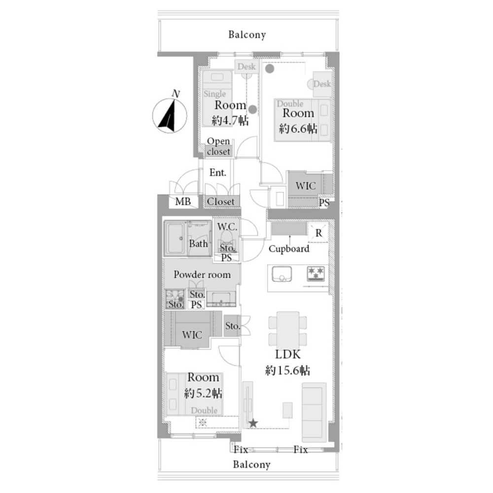 光と風をたっぷり取り入れる、最上階の両面バルコニー物件!77㎡のゆとりある間取りには、二箇所のウォークインクロゼットも備わります。