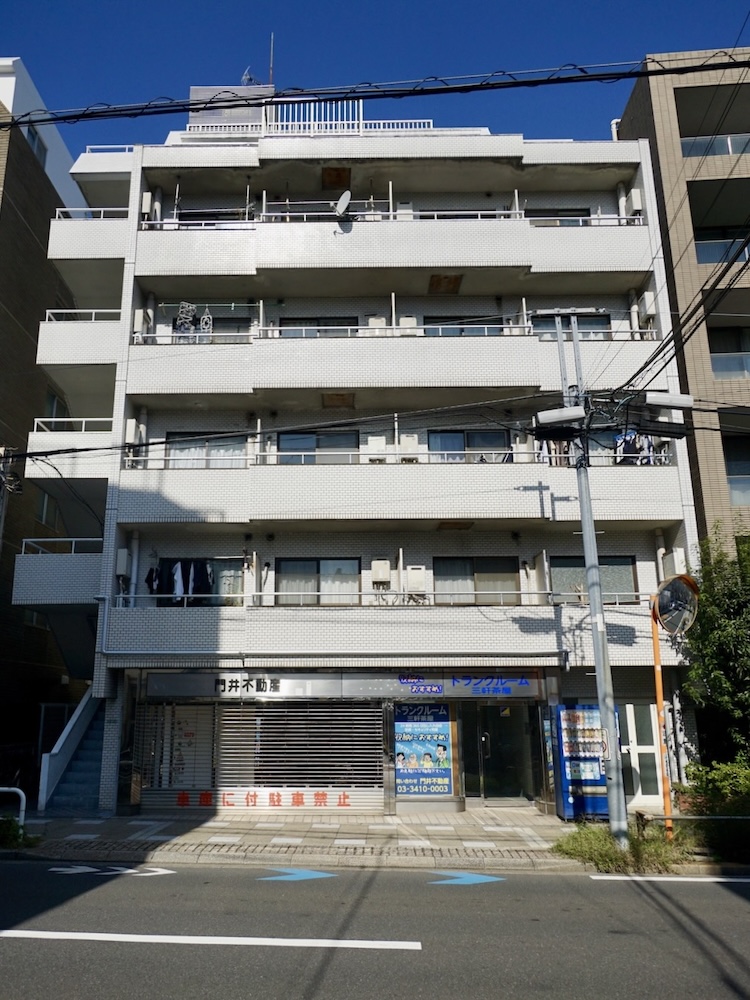 一階にテナントが入り、ビルの合間に挟まれて建つ、東京らしい佇まいです。