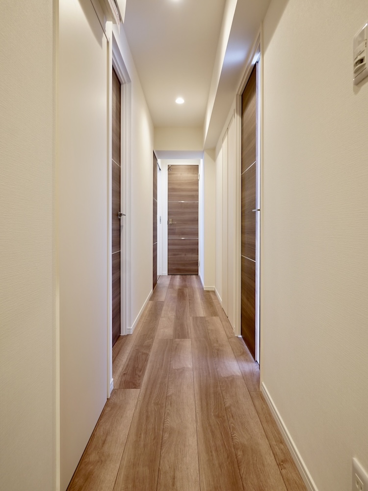 60㎡のコンパクトな部屋ながら、廊下には二箇所の収納を用意。