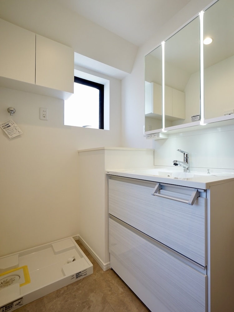 洗面台はパナソニック製で、継ぎ目や隙間のない一体型カウンター、引き出して使えるマルチシングルレバー水栓で、お掃除もラクラクの仕様です。